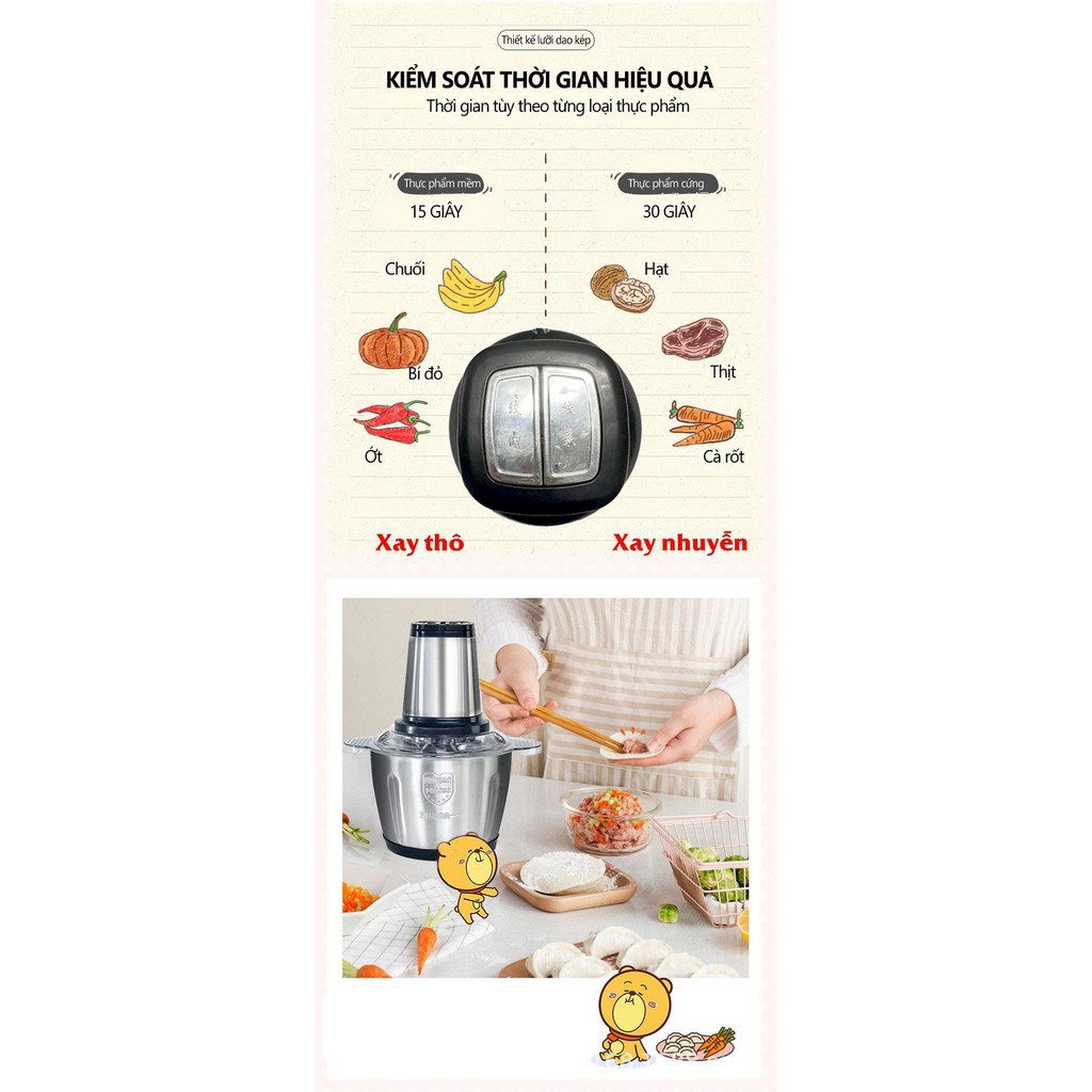 - Sử dụng: Xay thịt, cá, rau củ…