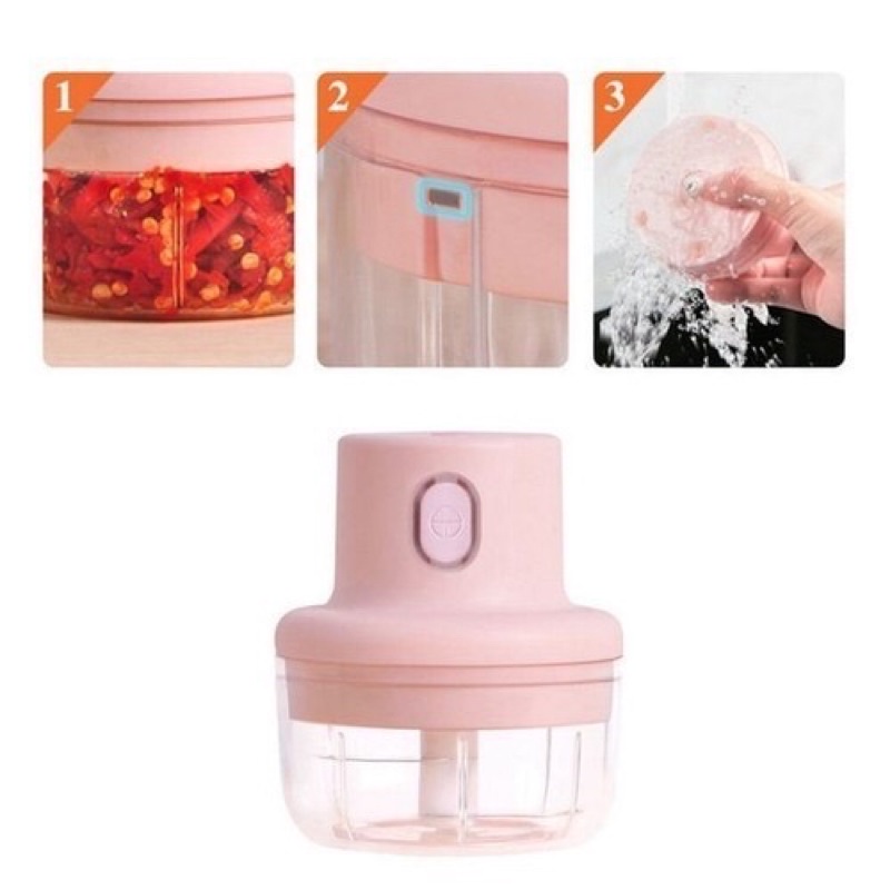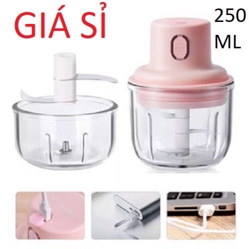 Máy Xay Thịt Cầm Tay Mini Tích Điện 250ml - Máy Xay Tỏi Ớt Đa Năng Có Cổng USB