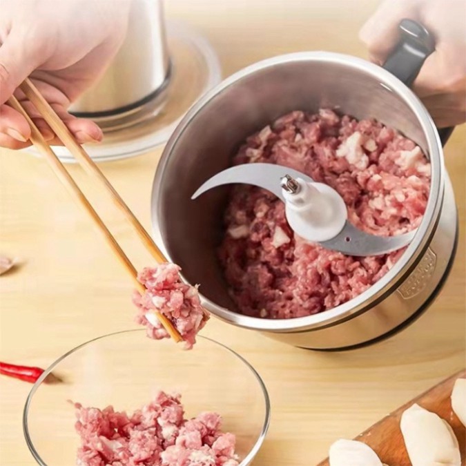 Máy Xay Thịt Cầm Tay SOKANY Cối Inox Đa Năng 4 Lưỡi Công suất 600W Xay Cua Cá, Tỏi Ớt, Rau Củ Quả