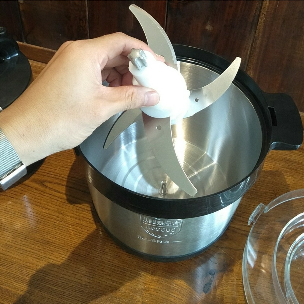 - Nếu bạn muốn xay làm giò chả mỗi mẻ xay 1kg(tối đa làm giò 3kg ~ 3 mẻ xay, bạn cần phải cho máy nghỉ nếu khi xay có hiện tượng nóng máy)