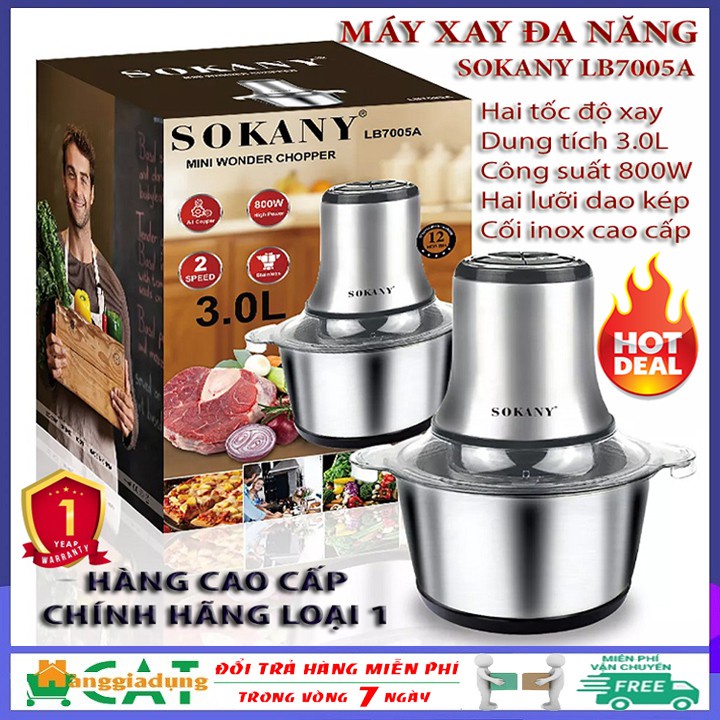 💯💯💯 Máy xay thịt cao cấp SOKANY LB7005A hai tốc độ xay, công suất 800W, dung tích 3.0LThông tin về sản phẩm: