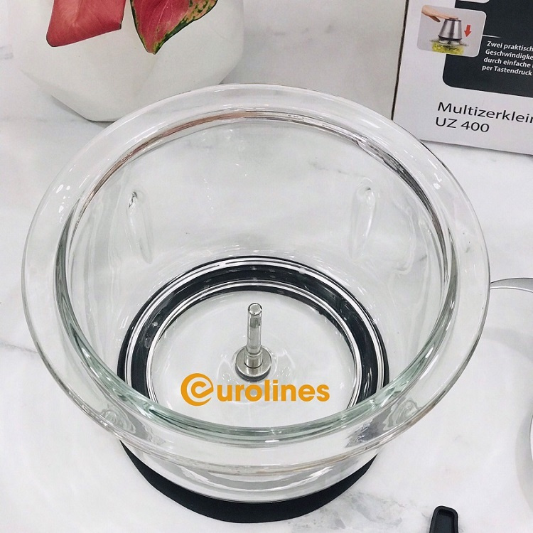 + Cối đựng thực phẩm làm bằng thủy tinh cao cấp, trong suốt, dày dặn sẽ khiến cho bạn thực sự hài lòng. Cối đựng này của Máy xay CASO UZ400 cực kì an toàn cho sức khỏe, dung tích 1 lít tối ưu, miệng cối khá lớn, dễ dàng cho thực phẩm vào. Cối này có hai tay cầm dày dặn, bạn có thể dễ dàng mang cối đi khi tháo rời để thực hiện nấu nướng.