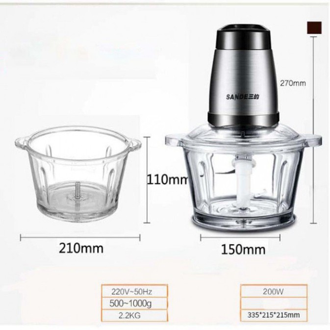 Máy xay thịt chính hãng Sande cối thủy tinh máy xay thực phẩm 2 tầng lưỡi xay khỏe, nhuyễn đa năng- Đối với những gia đình có con nhỏ hay người lớn tuổi thì việc xay nhỏ hay xay nhuyễn thực phẩm là điều cần thiết để không ảnh hưởng đến sức khỏe của bé. Nhưng những thao tác truyền thống như băm chặt trên thớt vừa lâu lại không an toàn vệ sinh. Hiểu được tâm lý của các bậc cha mẹ, shop đã đưa ra một dụng cụ nhà bếp vô cùng lý tưởng cho việc xay thịt cá.