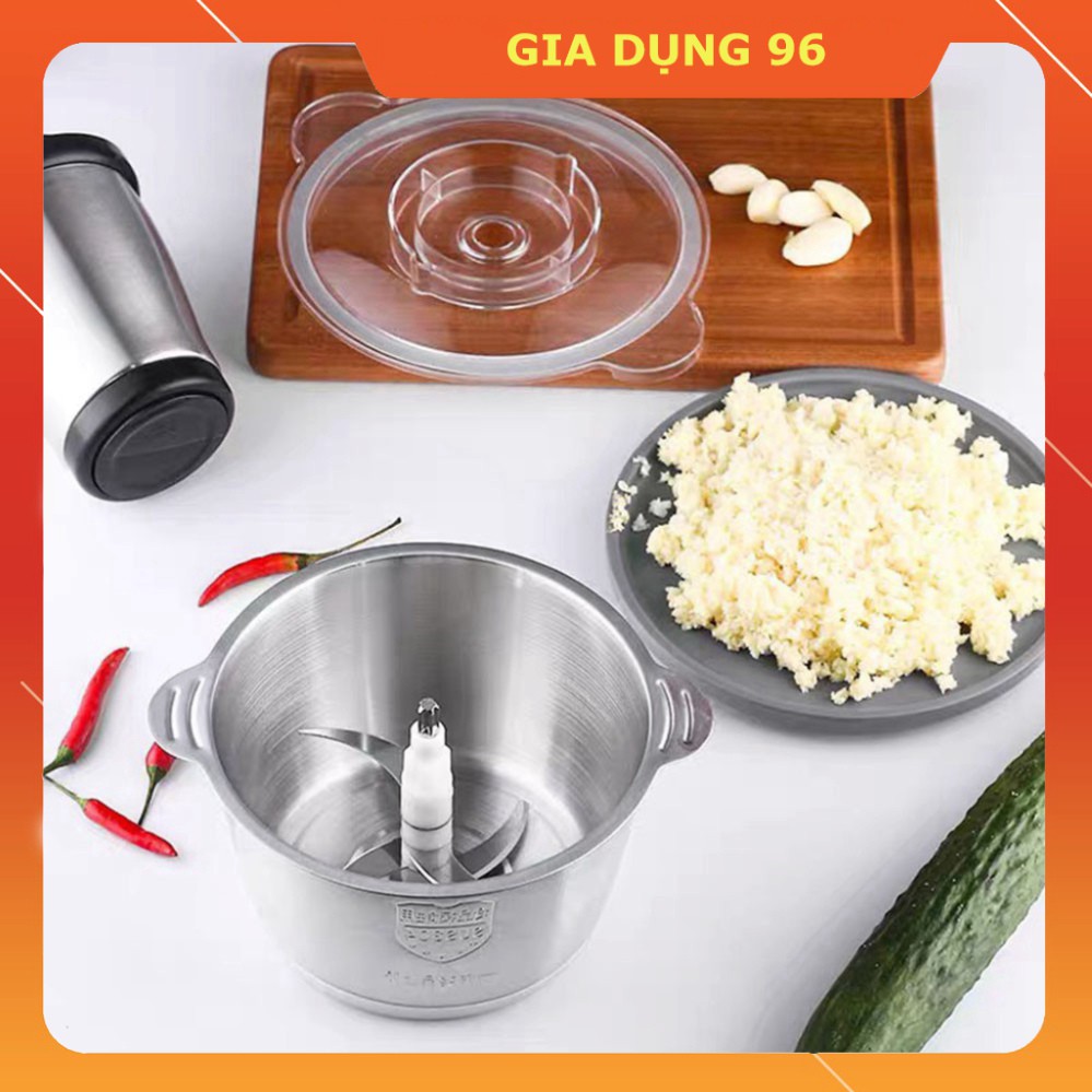 Máy Xay Thịt Cối Inox 2L Công Suất 300W, Cối Xay Thực Phẩm Đa Năng 4 Lưỡi Đa Năng