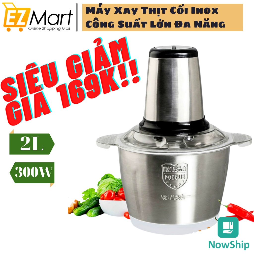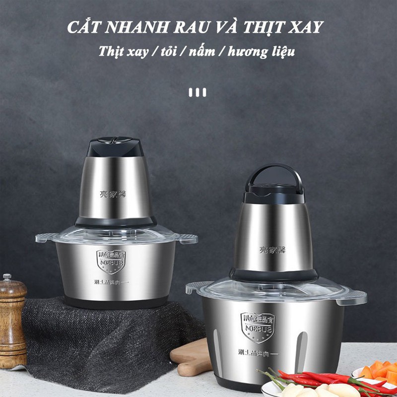 Máy Xay Thịt Cối Inox 304 2L-300W Đa Năng Cao Cấp- 2 Lưỡi Kép- Máy Xay Thịt, Rau Củ Quả, Xay Tỏi Ớt
