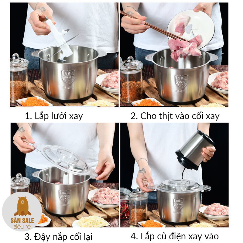 Giới thiệu Máy Xay Thịt Cối Inox 304 2L-300W Đa Năng Cao Cấp- 2 Lưỡi Kép- Máy Xay Thịt, Rau Củ Quả, Xay Tỏi Ớt