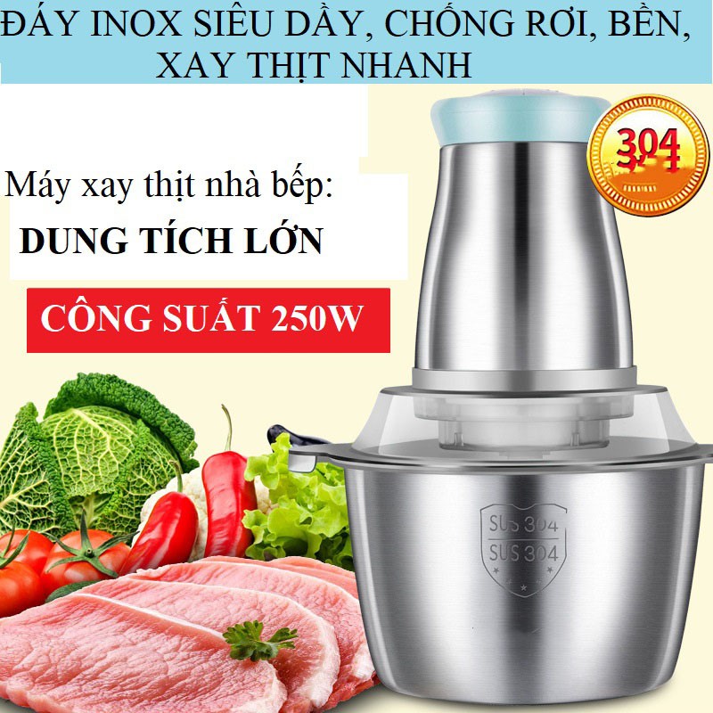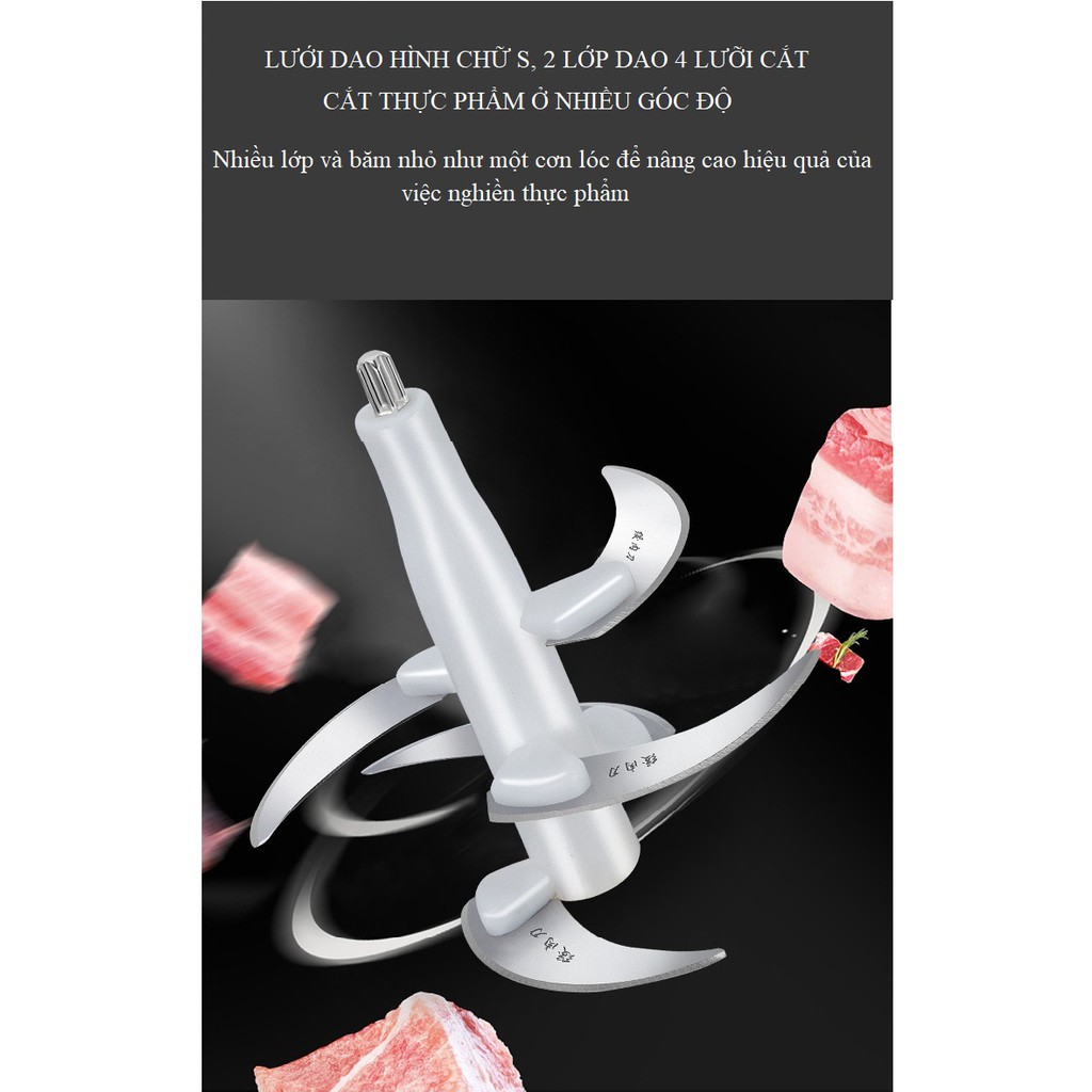 Máy Xay Thịt Cối Inox 4 Lưỡi Đa Năng Xay rau củ quả tỏi ớt - Công suất 250W