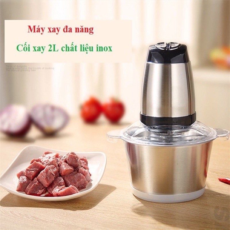 Máy Xay Thịt Cối Inox 4 Lưỡi Đa Năng, Công suất 250W- Xay thịt, xay tỏi ới, xay rau củ quả - Máy xay thịt Electric