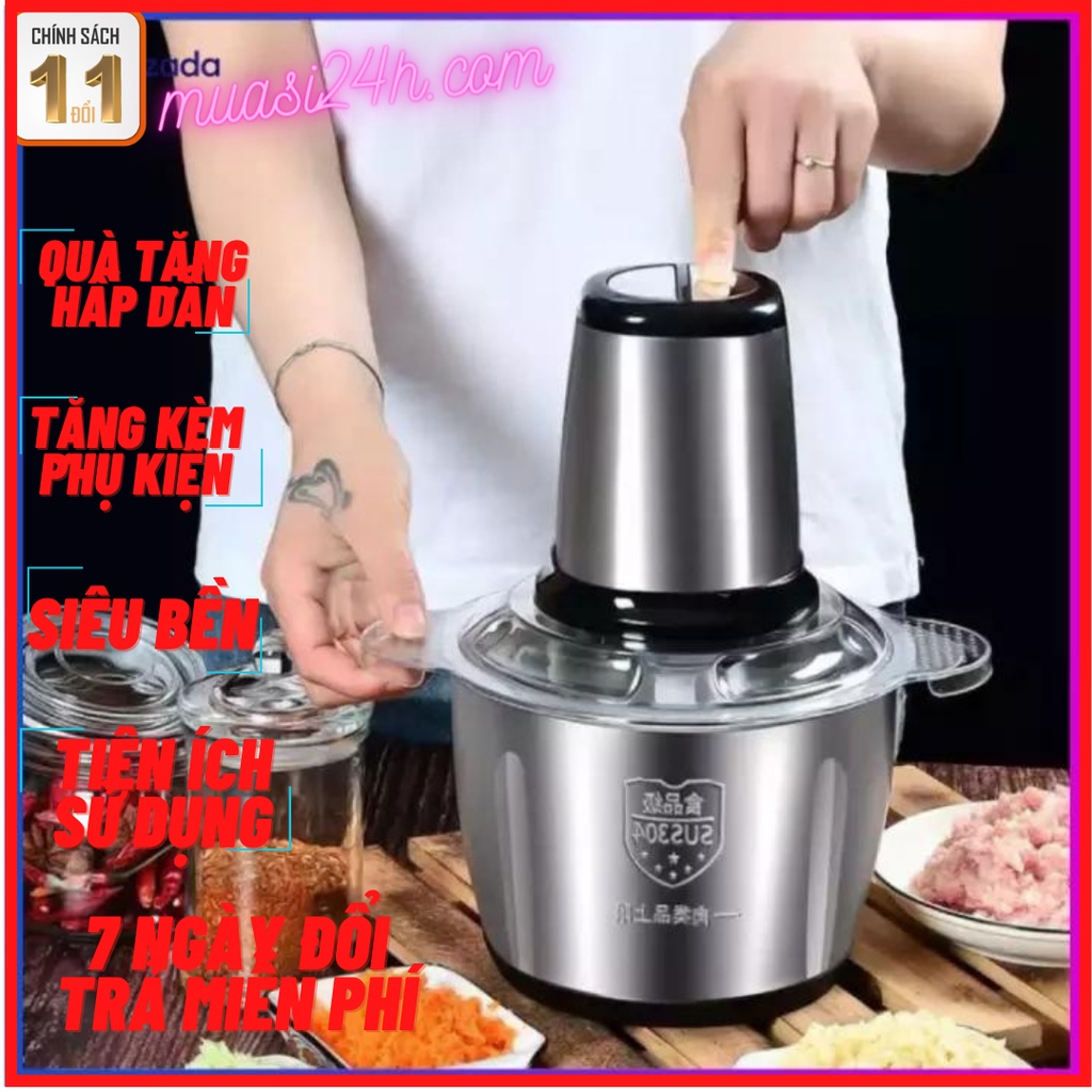 Máy Xay Thịt Cối Inox 4 Lưỡi Đa Năng, xay thịt, xay tỏi ới, xay rau củ quả Freeship(hàng săn)sharp lotte sunhouse xiaom