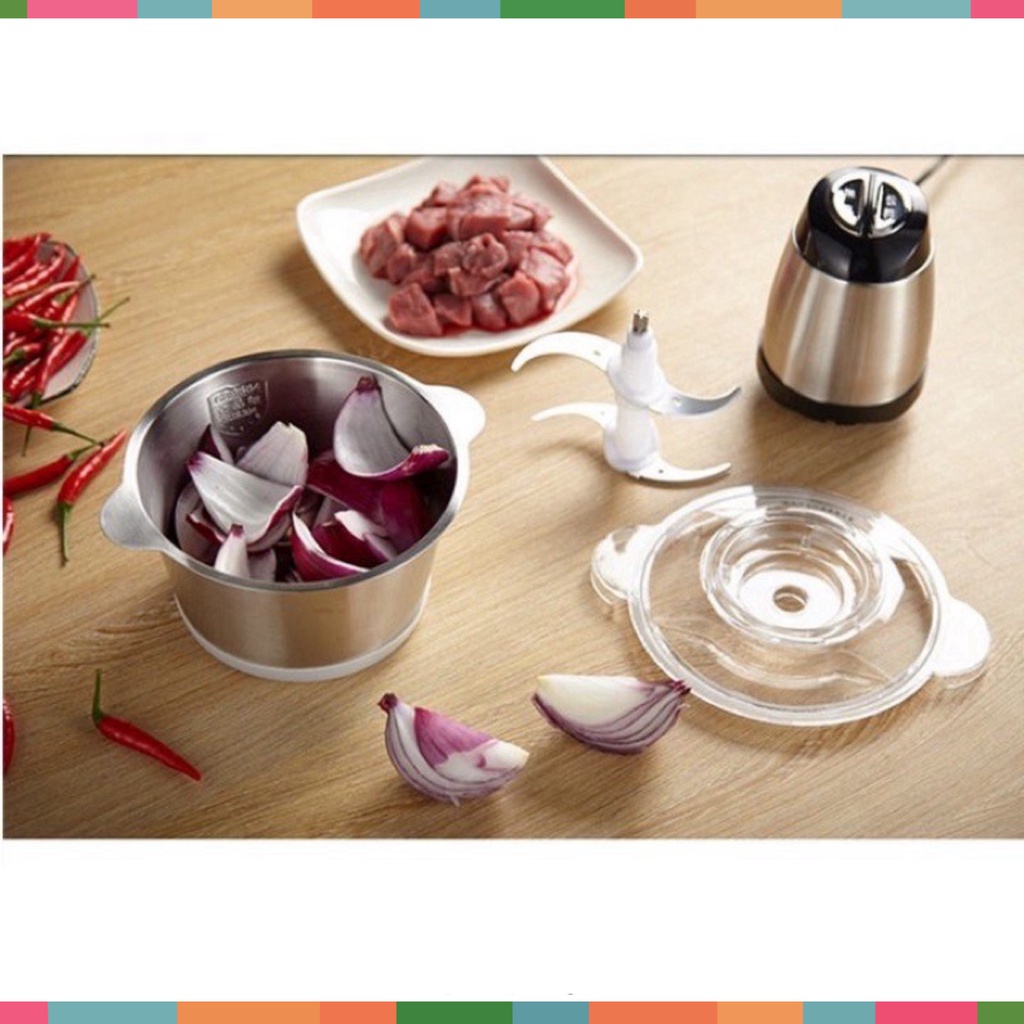 Thiết Bị Điện Gia Dụng > Đồ gia dụng nhà bếp > Máy chế biến thực phẩm & Xay thịt || Máy Xay Thịt Cối Inox 4 Lưỡi Đa Năng, Công suất 250W- Xay Thực Phẩm 2l,Chất Liệu Inox 304 Chuẩn, Siêu Bén - Máy xay thịtCòn hàng