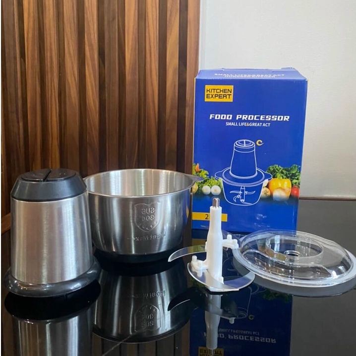Thiết Bị Điện Gia Dụng > Đồ gia dụng nhà bếp > Máy chế biến thực phẩm & Xay thịt || MÁY XAY THỊT CỐI INOX DAO 4 LƯỠI FOOD PROCESSOR 2 LÍT/ LƯỠI DAO DỰ PHÒNGCòn hàng