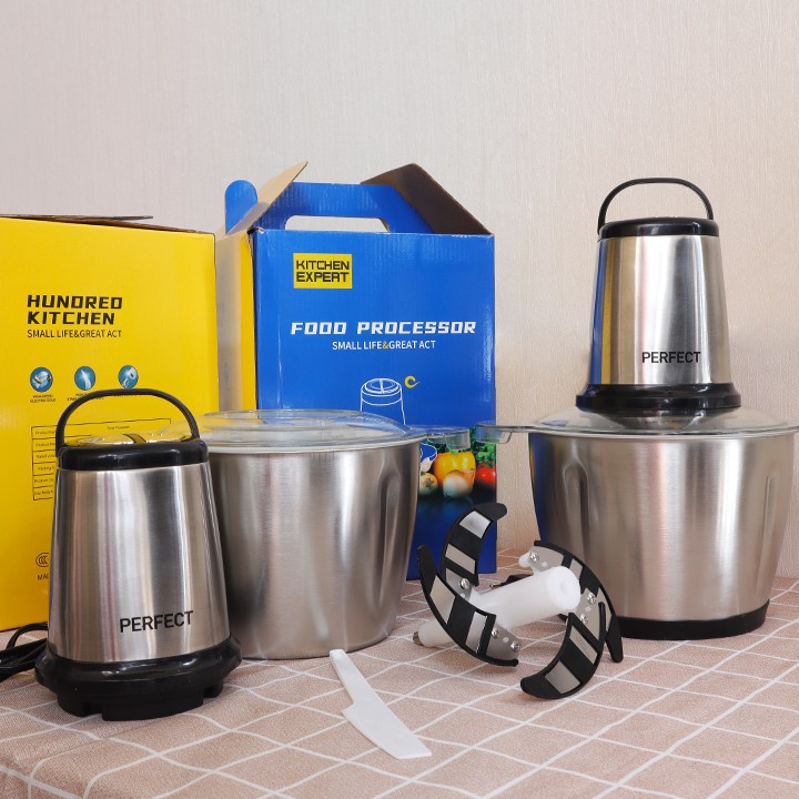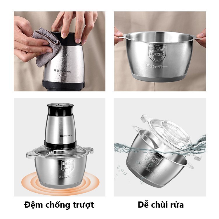 Máy xay thịt cối inox dung tích 2L, xay đa năng 4 lưỡi có thể dùng xay tiêu, thịt cá hoặc các loại thực phẩm khác
