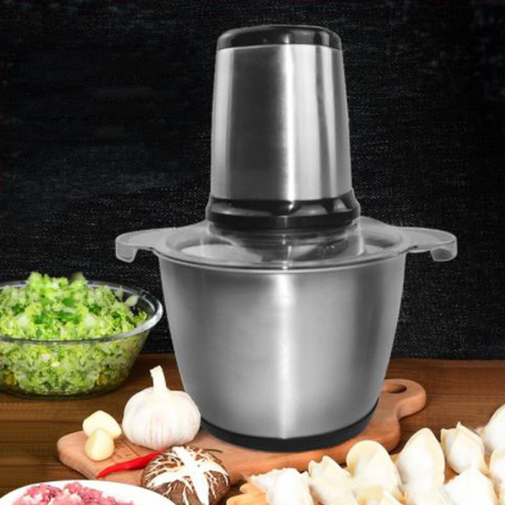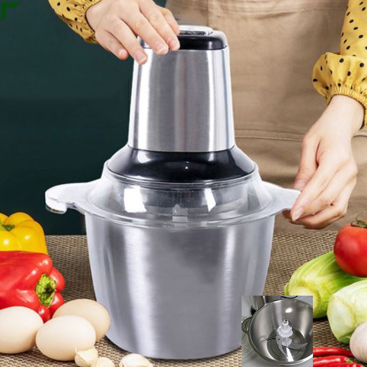 Máy xay thịt cối inox dung tích 2L, máy xay đa năng 4 lưỡi có thể dùng xay hành tỏi, xay tiêu hoặc các loại thực phẩm