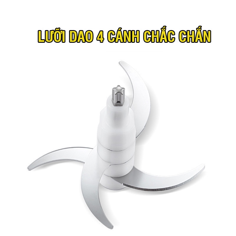 Lưỡi dao kép 4 cánh sắc bén, được làm bằng thép không rỉ có khả năng chống ăn mòn tốt, đảm bảo vệ sinh và an toàn cho sức khỏe, mang đến khả năng xay nhuyễn nhanh chóng và đều nhiều loại thực phẩm khác nhau.