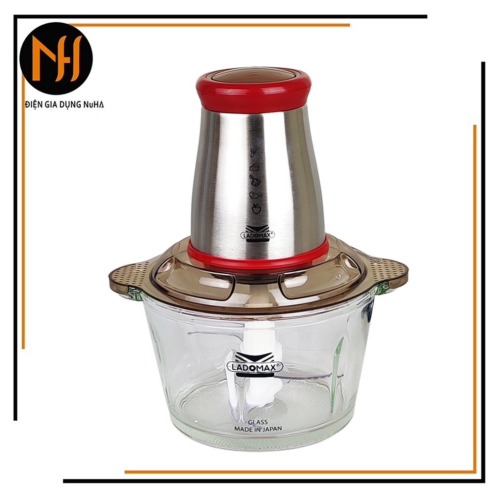 Máy xay thịt cối thủy tinh 2.0L thân máy inox Ladomax HA-333Inox, bảo hành 12 tháng
