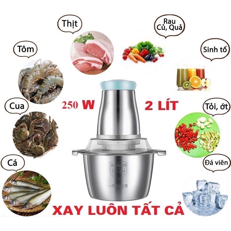 Máy xay thịt đa năng 2l inox 304, 4 lưỡi dao thép không gỉ