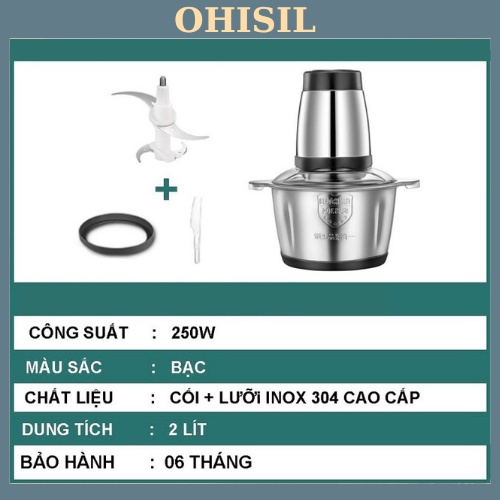 Tên sản phẩm : Máy xay thịt đa năng 4 lưỡi cối INOX 304 cao cấp OHISIL Cối xay thịt công suất 250W bảo hành 12 thángThông tin sản phẩm
