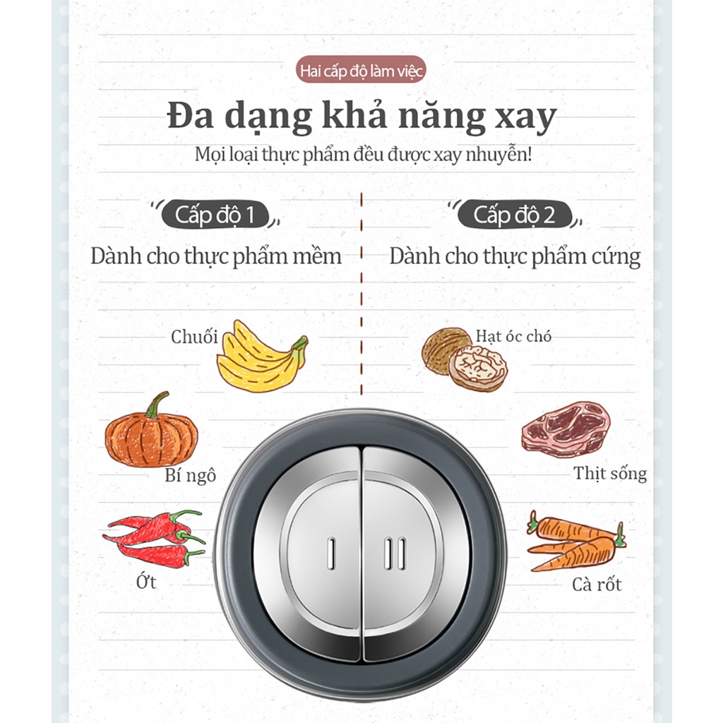 ✔ 2 chế độ xay tiện lợi, phù hợp với mọi nhu cầu sử dụng, công xuất mạnh mẽ, xay nhiều loại thực phẩm khác nhau