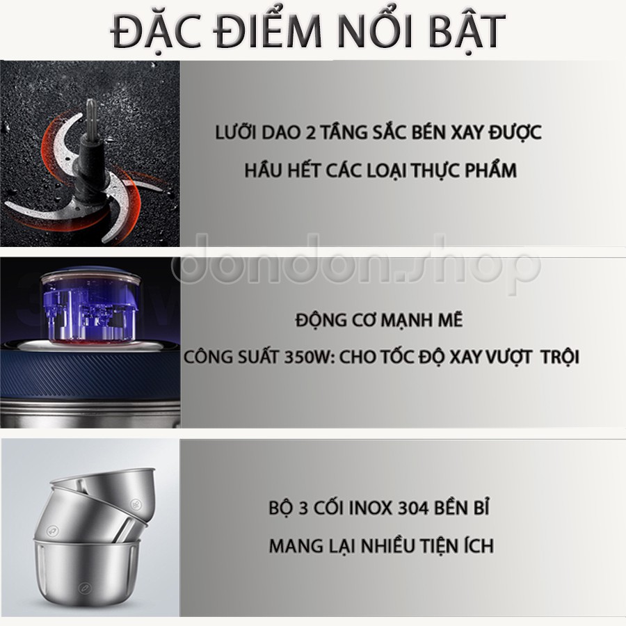 Thiết Bị Điện Gia Dụng > Đồ gia dụng nhà bếp > Máy trộn thực phẩm || Máy xay thịt đa năng - bóc vỏ tỏi MORPHY RICHARDS bộ 3 cối Inox 304 cao cấp 350W BẢO HÀNH 12 THÁNGCòn hàng
