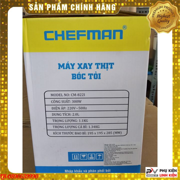 Máy Xay Thịt Đa Năng CHEFMAN Cao Cấp Công Suất 300W,Dung Tích 2L, Xay Thịt,Cá, Rau Củ Quả,Cối Xay InoxĐặc điểm của Máy xay thịt Chefman CM - 822i