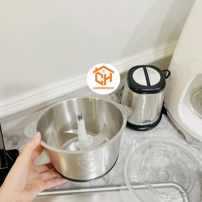 Máy Xay Thịt Đa Năng Cối 2L Inox 304 ,4 Lưỡi Dao Thép Không Gỉ,Say Sinh Tố Thịt, Cá, Rau Củ Hoa Quả CamCamHome
