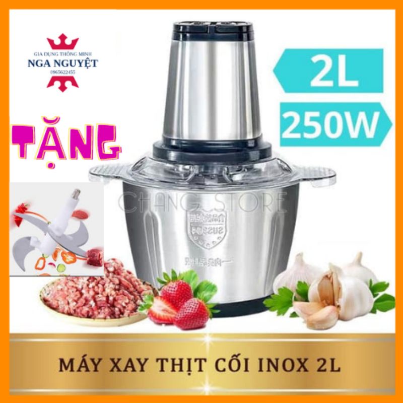 Máy xay thịt đa năng cối 2L inox 304,tặng lưỡi dao thay thế