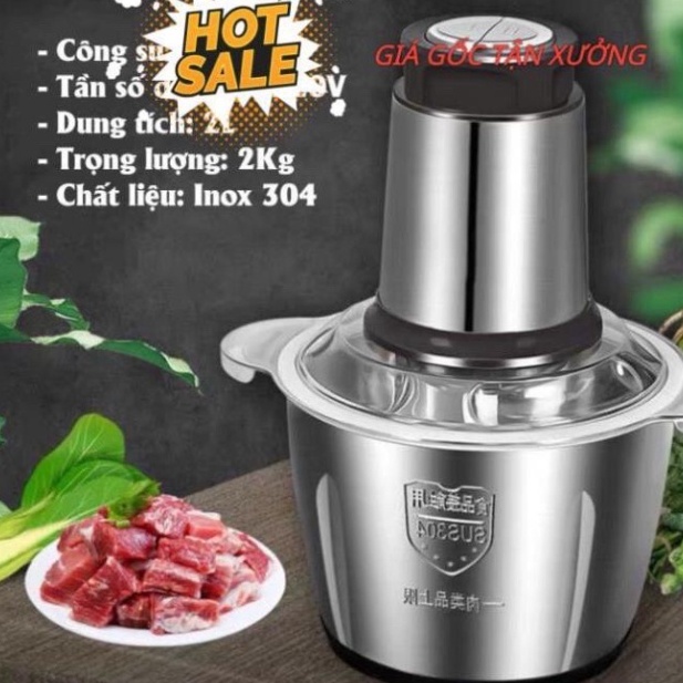 Máy Xay Thịt Đa Năng Cối 2L Inox 304, Lưỡi Dao Thép Không Gỉ, xay Sinh Tố Thịt, Cá, Rau Củ Hoa Quả