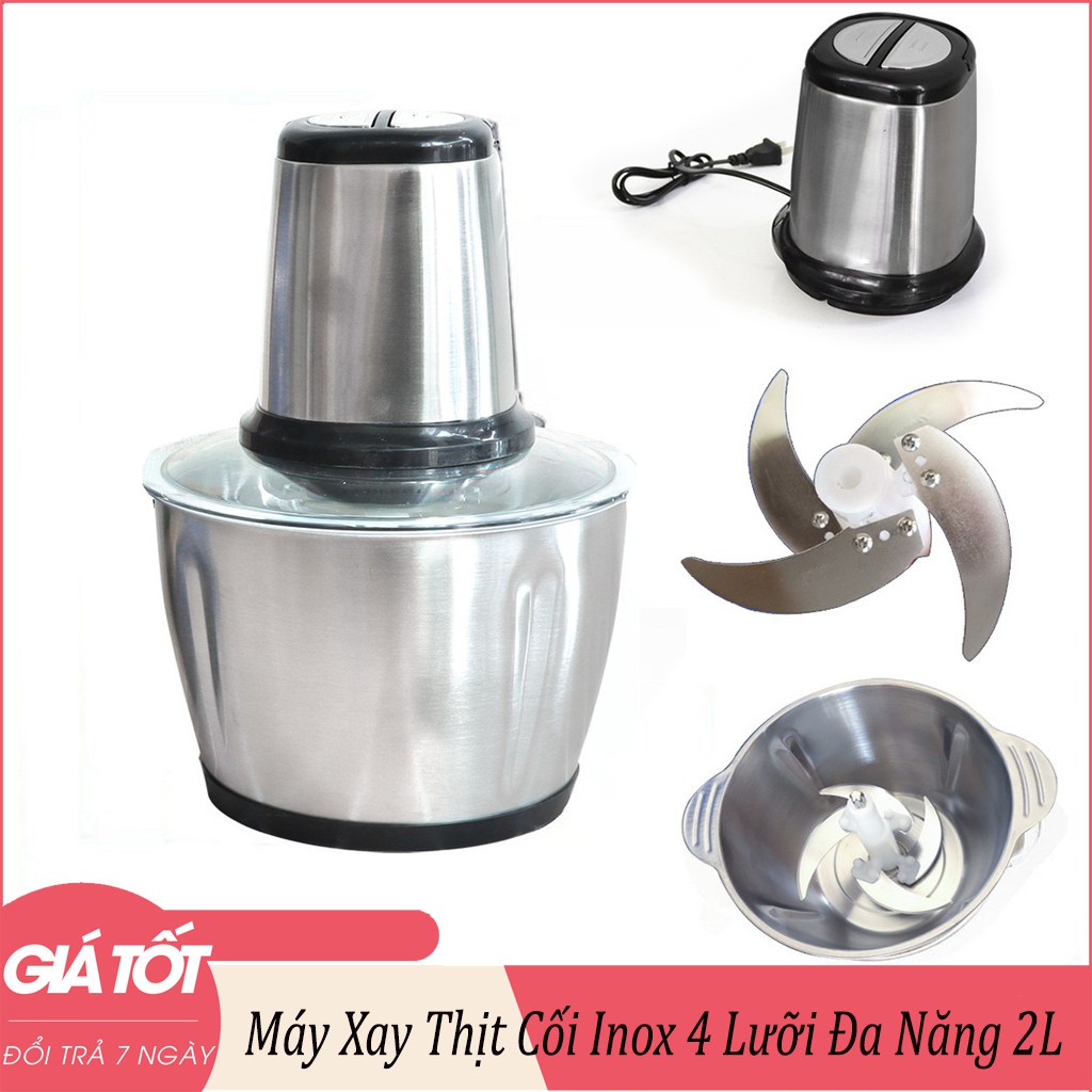 Máy Xay Thịt Đa Năng Cối 2L Inox 304,4 Lưỡi Dao Thép Không Gỉ,Say Sinh Tố Thịt, Cá, Rau Củ Hoa Quả (GIÁ HỦY DIỆT)