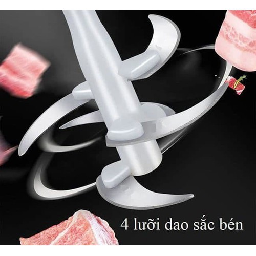 - Lưỡi dao với 4 lưới rất sắc bén giúp xay được nhiều thực phẩm như cá, thịt, rau củ thái nhỏ...