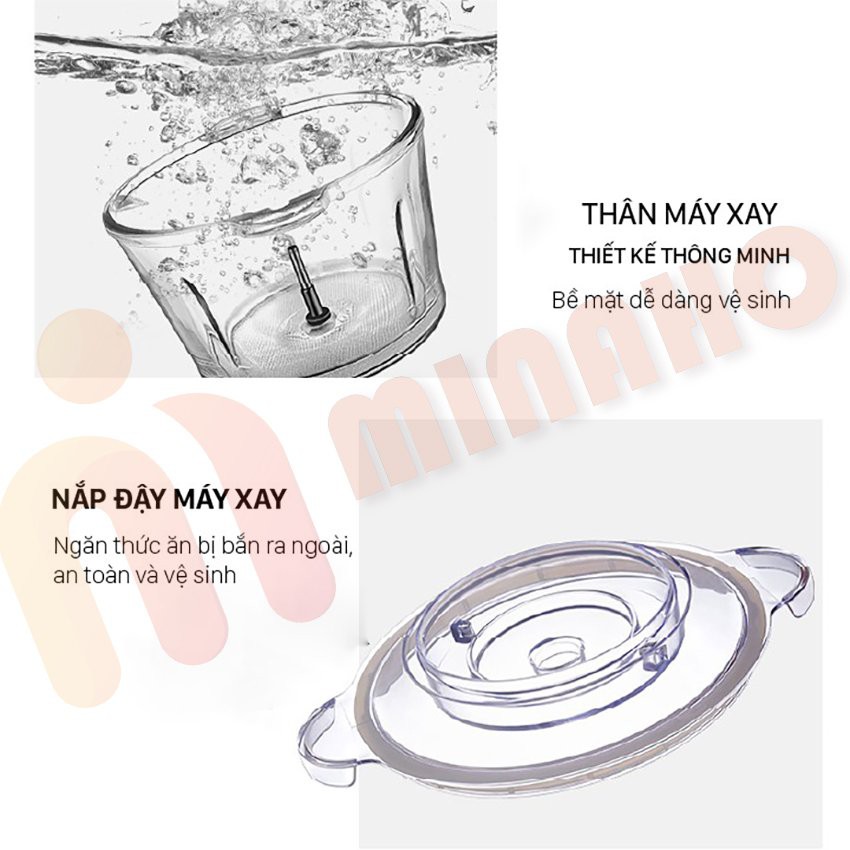 Máy Xay Thịt Đa Năng Cối Inox MINAHO - 4 Lưỡi Dao Thép Không Gỉ,Say Sinh Tố Thịt, Cá, Rau Củ Hoa Quả (CHẤT LƯỢNG CAO)