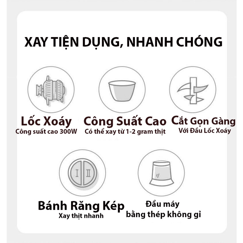 ✅THÔNG TIN SẢN PHẨM: Máy xay thịt đa năng cối inox 304, 4 lưỡi dao thép không gỉ, Máy xay thịt inox đa năng, xay sinh tố thịt, cá, rau củ hoa quả- Công suất: 200-300W