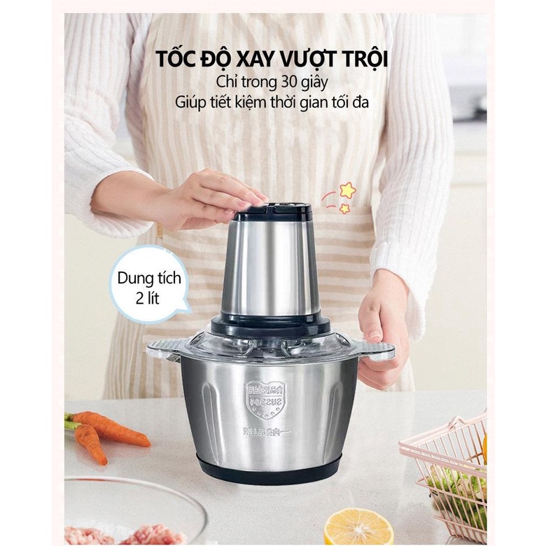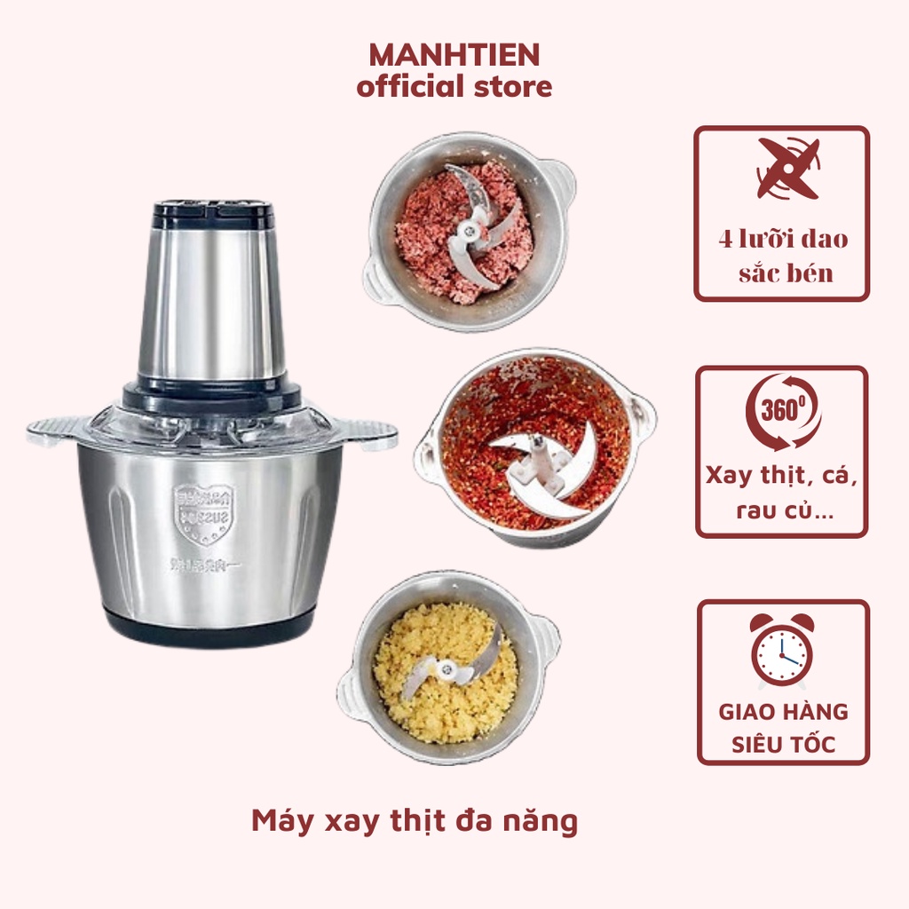 Thiết Bị Điện Gia Dụng > Đồ gia dụng nhà bếp > Máy chế biến thực phẩm & Xay thịt || Máy xay thịt đa năng cối inox 304 4 Lưỡi Đa Năng, Công suất 250W- Xay thịt, xay tỏi ới, xay rau củ quả DTM StoreCòn hàng