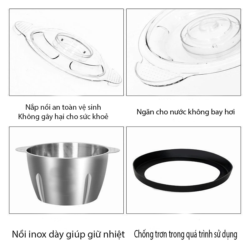 Lưỡi xay được gia công bằng chất liệu inox cao cấp không gỉ, có độ bền cao, giúp xay được cả những thức ăn cứng, khó nghiền, đồng thời có nắp đậy hạn chế tình trạng văng trong khi xay.