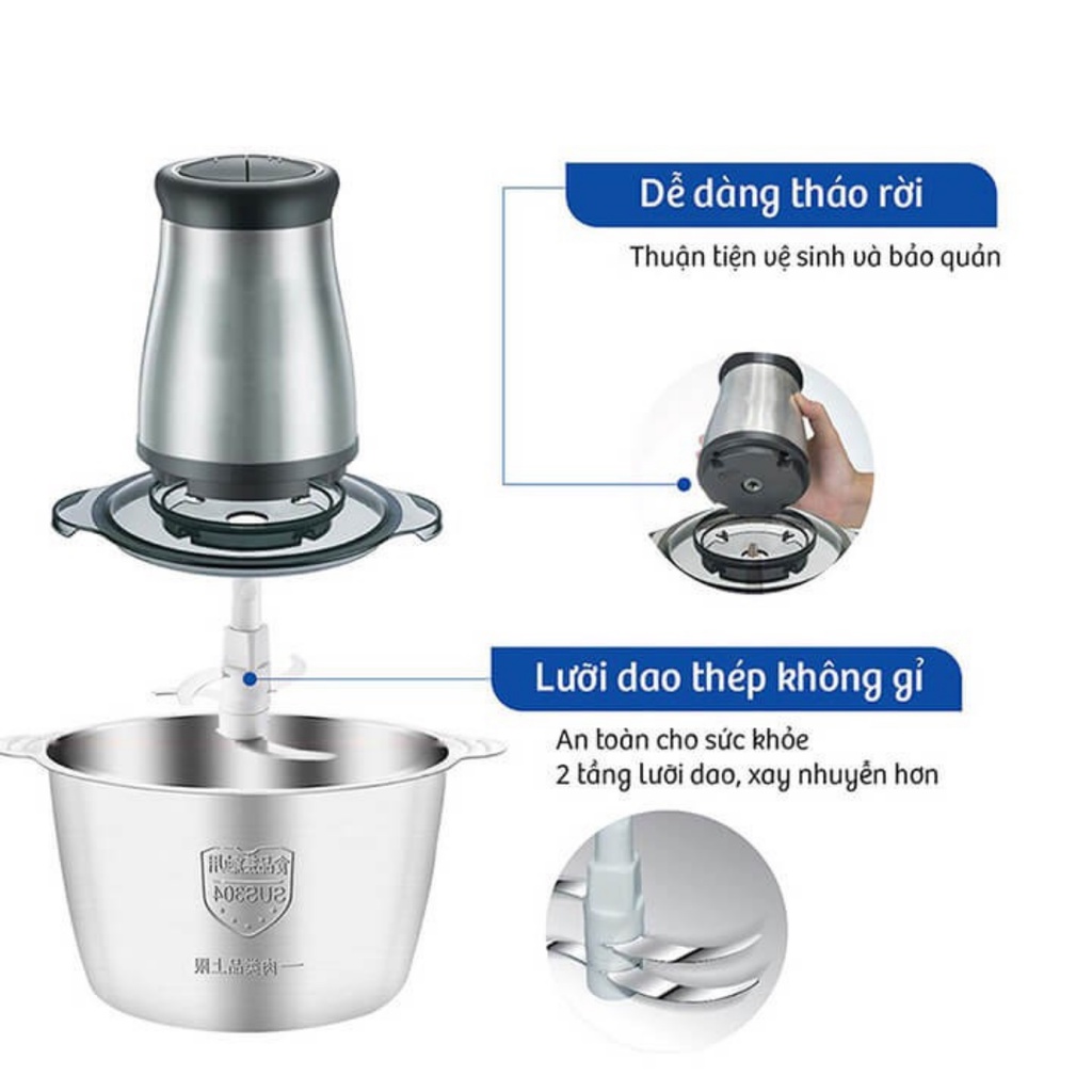 Máy xay thịt đa năng cối inox 304 4 Lưỡi Đa Năng, Công suất 250W- Xay thịt, xay tỏi ới, xay rau củ quả DTM Store