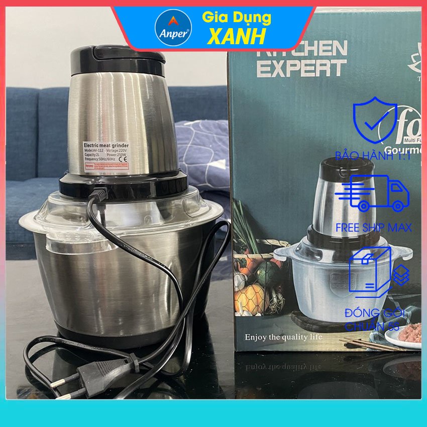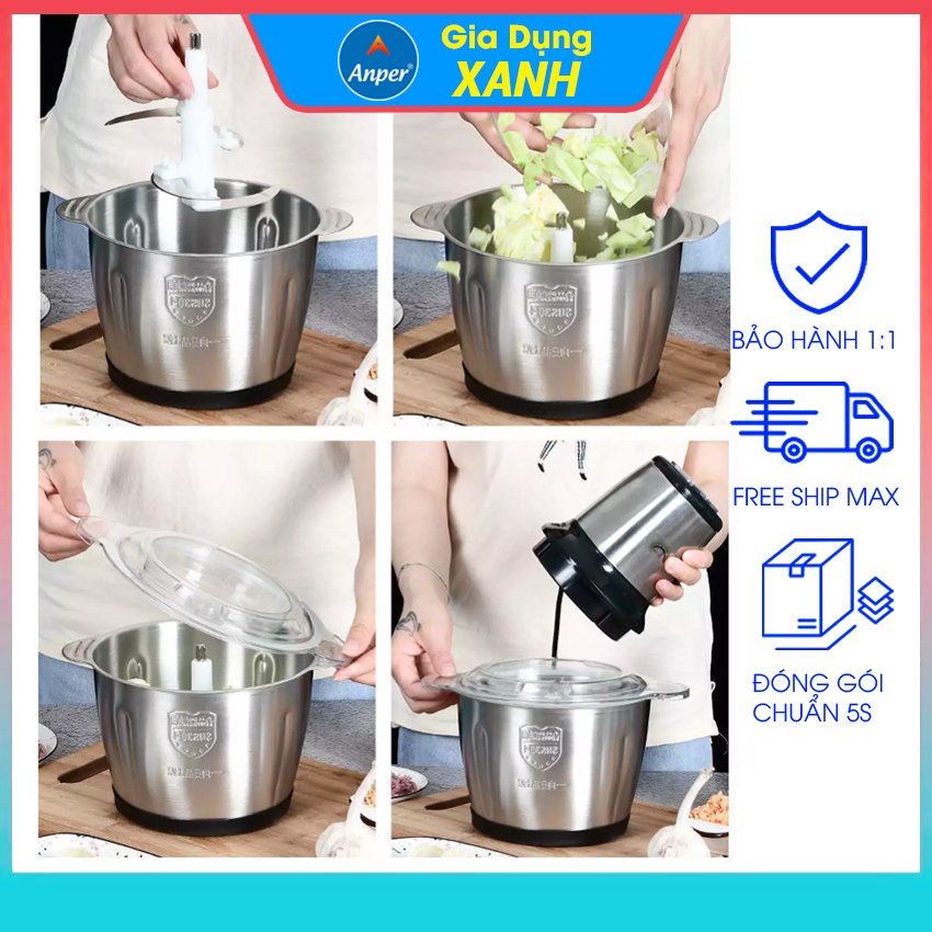 Máy xay thịt đa năng cối Inox 304 dung tích 2L 4 lưỡi dao bằng thép sinh tố tỏi tiêu thức ăn sunhouse
