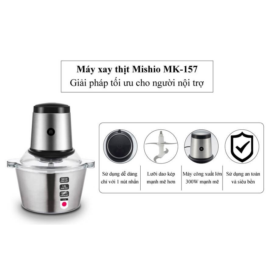 Máy Xay Thịt Đa Năng Cối Inox Mishio MK157 1.8L