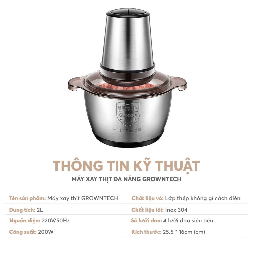 Giới thiệu Máy xay thịt đa năng cối Inox 304 dung tích 2L 4 lưỡi dao bằng thép sinh tố tỏi tiêu thức ăn G01