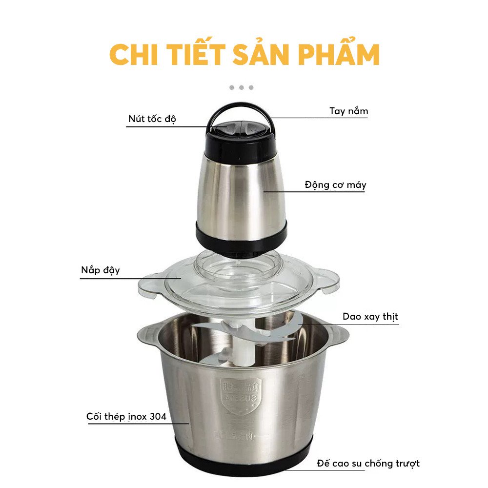 Thiết Bị Điện Gia Dụng > Đồ gia dụng nhà bếp > Máy chế biến thực phẩm & Xay thịt || Máy xay thịt đa năng cối Inox 304 dung tích 2L 4 lưỡi dao bằng thép sinh tố tỏi tiêu thức ăn G01Còn hàng