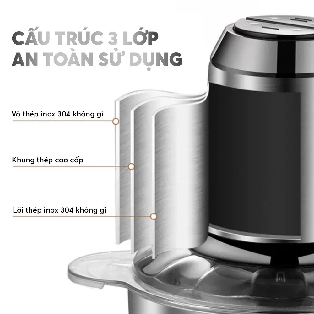 Máy xay thịt đa năng cối Inox 304 dung tích 2L 4 lưỡi dao bằng thép sinh tố tỏi tiêu thức ăn G01
