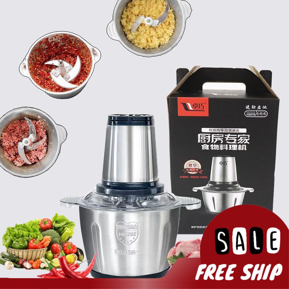 Máy Xay Thịt Cối Inox 4 Lưỡi Đa Năng, Công suất 250w xay thịt, xay tỏi ới, xay rau củ quả, BẢO HÀNH 3 THÁNG