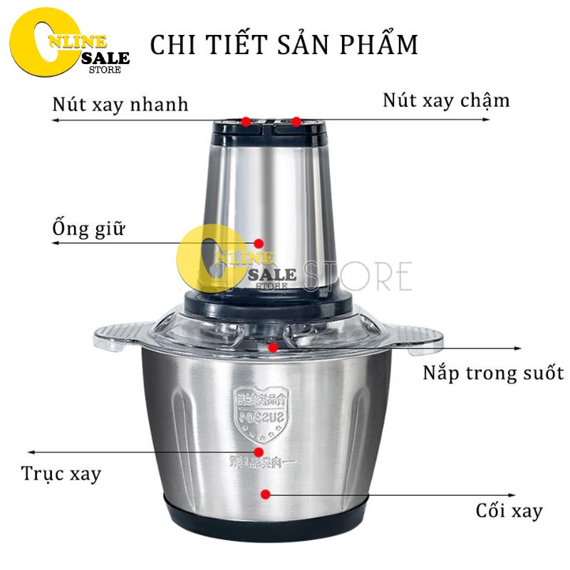 Thiết Bị Điện Gia Dụng > Đồ gia dụng nhà bếp > Máy chế biến thực phẩm & Xay thịt || Máy Xay Thịt Đa Năng Cối INOX 304 2L Công Suất 250W, 4 Lưỡi, Cối xay thực phẩmCòn hàng