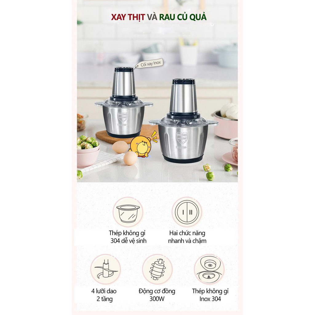 +Công dụng: Xay thịt, cá , tôm, Cua, ghẹ và các loại nguyên liệu thực phẩm mềm (rau củ quả)