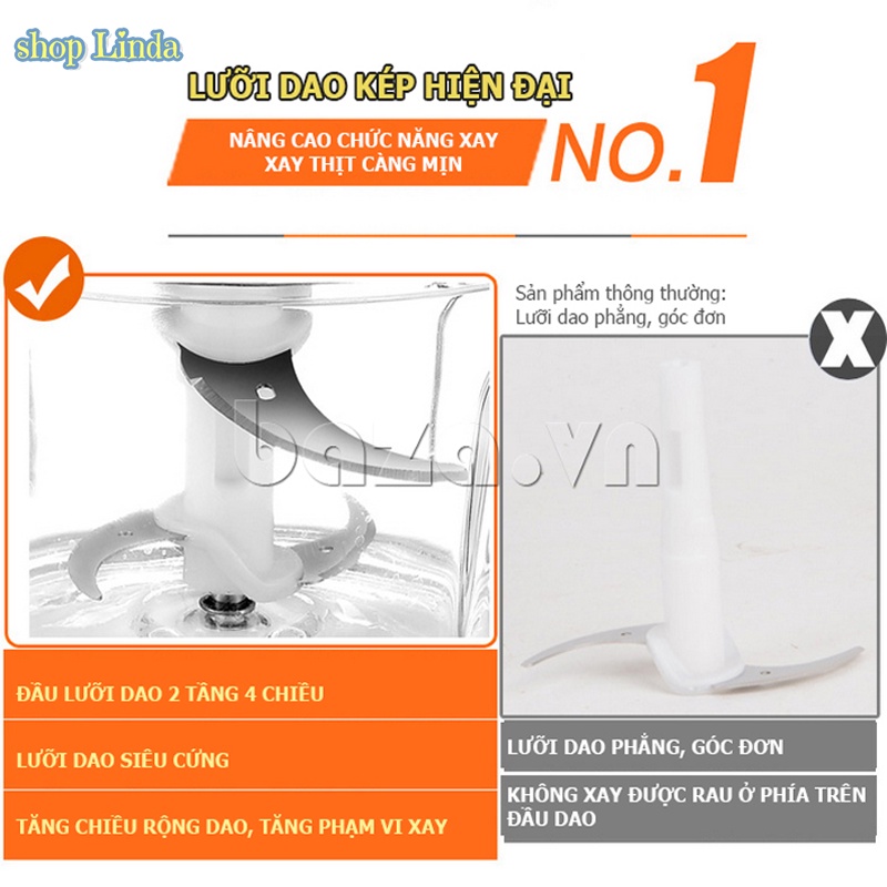 ✔️ Lưỡi dao kép cánh sắc bén, được làm bằng thép không rỉ có khả năng chống ăn mòn tốt, đảm bảo vệ sinh và an toàn cho sức khỏe, mang đến khả năng xay nhuyễn nhanh chóng và đều nhiều loại thực phẩm khác nhau.