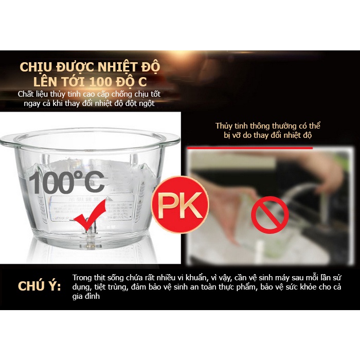 ✔️ Cối thủy tinh của máy xay có độ bền cao với độ dày cối là 7mm, dễ dàng vệ sinh, tẩy rửa