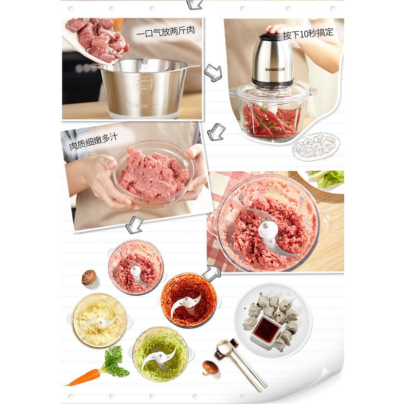 Thiết Bị Điện Gia Dụng > Đồ gia dụng nhà bếp > Máy chế biến thực phẩm & Xay thịt || Máy xay thịt đa năng cối thủy tinh Sandee cao cấp 2 tầng lưỡi công suất lớn,xay nhuyễn, tiếng nhỏ, xay mọi thứCòn hàng