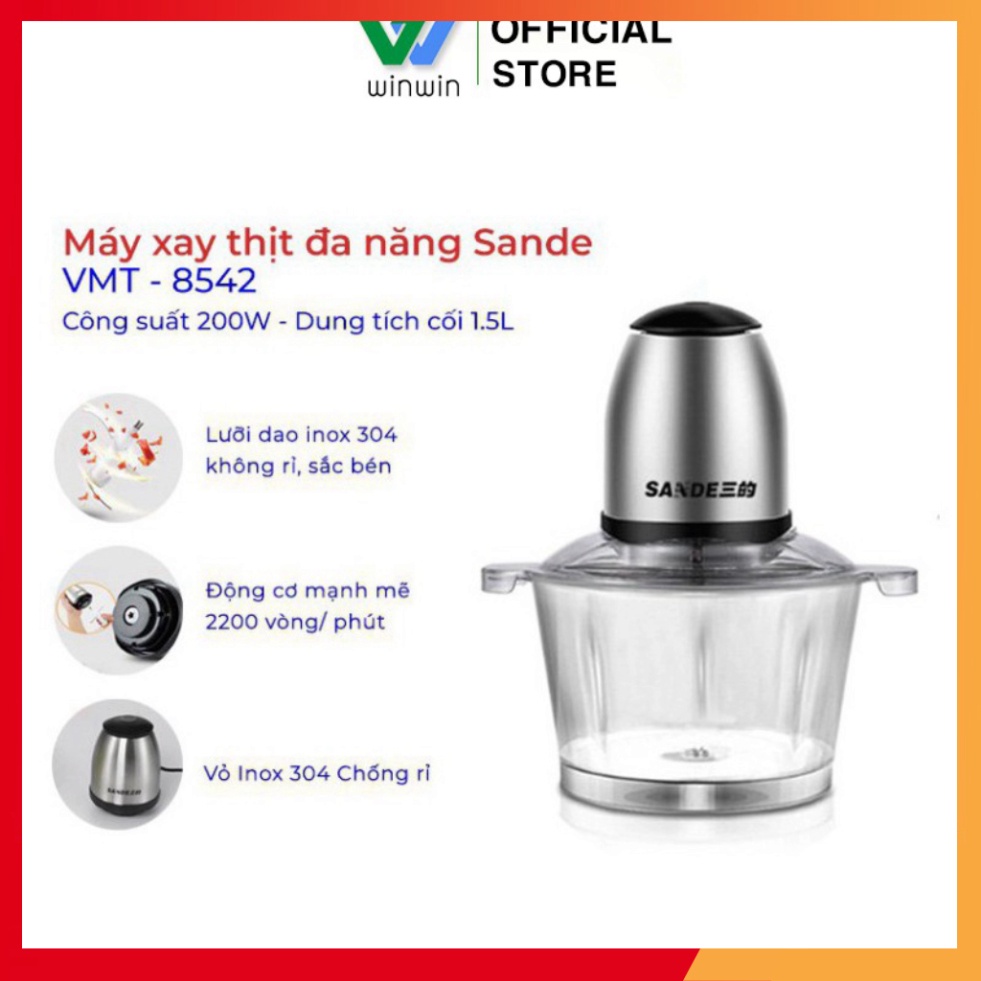 Thiết Bị Điện Gia Dụng > Đồ gia dụng nhà bếp > Máy chế biến thực phẩm & Xay thịt || Máy xay thịt đa năng cối thủy tinh Sandee cao cấp 2 tầng lưỡi công suất lớn,xay nhuyễn, máy êm_vimartCòn hàng