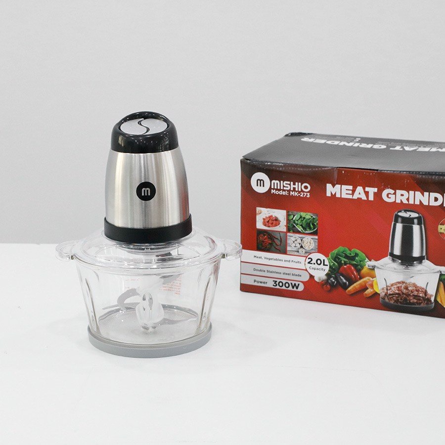 Máy Xay Thịt Đa Năng Cối Thủy Tinh Mishio MK273 2L | TẶNG: 1 Ca Nấu Đa Năng Mini