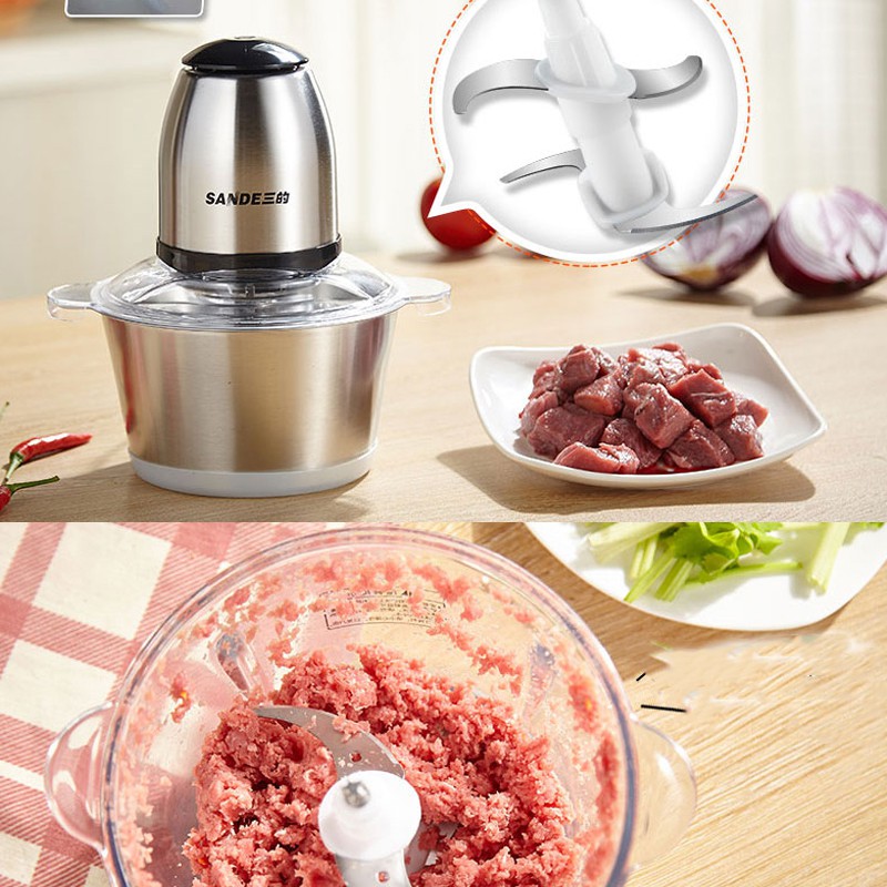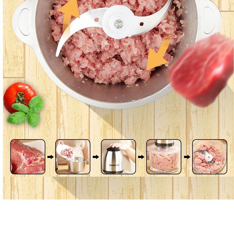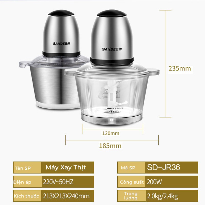 Máy xay thịt đa năng cối thủy tinh Sandee cao cấp 2 tầng lưỡi công suất lớn,xay nhuyễn, tiếng nhỏ, xay mọi thứ