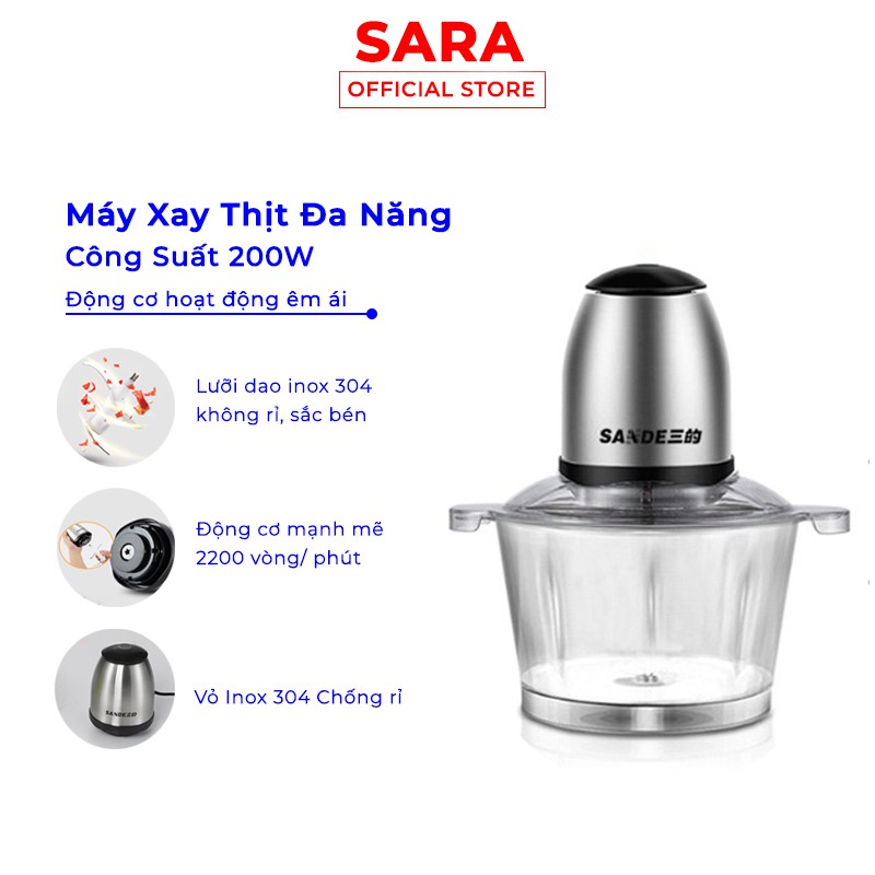 🌸 MÁY XAY THỊT, HOA QUẢ, XAY ĐÁ SANDE🍀 Máy xay sinh tố đa năng được thiết kế với kiểu dáng nhỏ gọn, dễ dàng sử dụng. Dưới đế máy được thiết kế với những chân cao su giúp giữ thân máy giữ vững trong quá trình xay trái cây, thịt ...Bạn có thể hoàn toàn an tâm về độ bền của cối bởi cối được làm bằng hợp nhựa chống trầy xước, va đập mạnh trong quá trình xay những vật cứng như đá, trái cây.🔐 THÔNG TIN SẢN PHẨM: