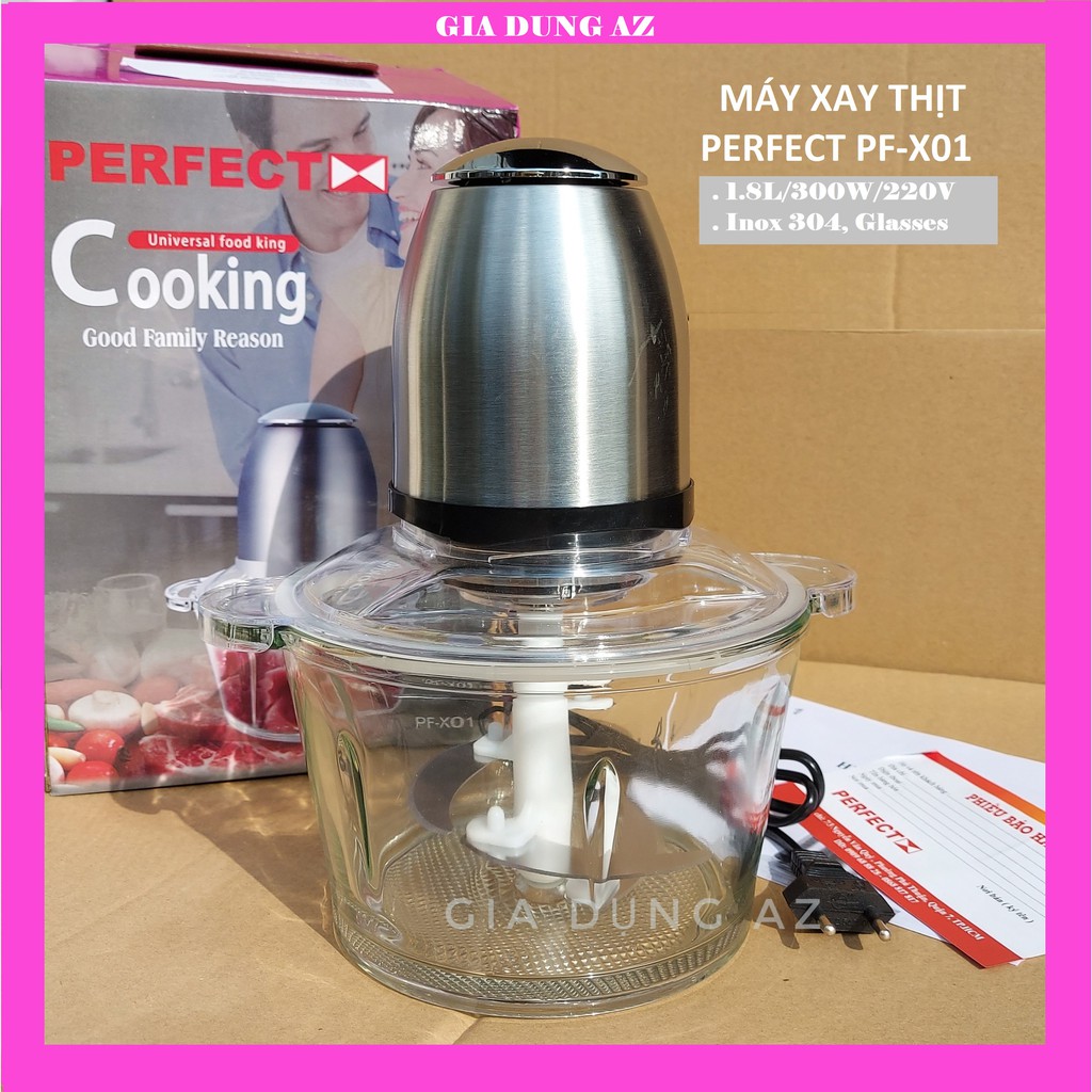 Máy xay thịt đa năng dung tích 1.8L Perfect PF-X01 cối thủy tinh bền đẹp, lưỡi dao sắc 5 cánh inox, bảo hành 12 tháng